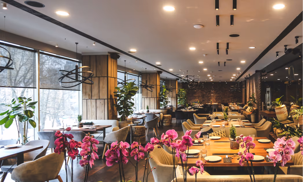 Зала першого поверху в стилі мінімалізму, чудово пасує для гучних зустрічей під акомпанемент авторських коктейлів та Dj set, другий поверх - ідеально для затишної вечері з живим звучання вокалу, простора зелена тераса з видом на місто створює ідеальний настрій та відчуття справжньої гостинності .